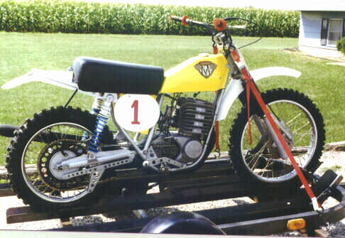 I purchased it in late 1974, but before I took delivery from Goodrich Cycles in Osceola, we dismantled it and sent the frame out to Wheelsmith to have it foward mounted. While it was out there, Wheelsmith experienced a massive burglary, and my frame was stolen. Wheelsmith replaced it with a pro frame they were making for the National series the next year (1975). What a deal for a 15 year old!! The tank is fiberglass and I am not sure if the airbox is orginal, of if it was made to be used with the new foward mounted frame. The dealer can't remember either but we think it was furnished by Wheelsmith.