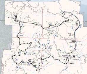 Old cedar creek trail is a long wide trail that would have also been apart of the easy course. At the end of the trail Steve tried out another trail across the street and Todd's tire had become completely flat. However he decided to ride the rest of the course with the flat tire as opposed to going back to the staging area. The next trail wouldn't be until 'Sticks and Stones' however this was still a long drive up the fire road and to a peak where we rested at 22 miles.