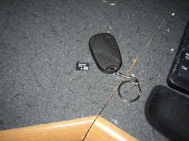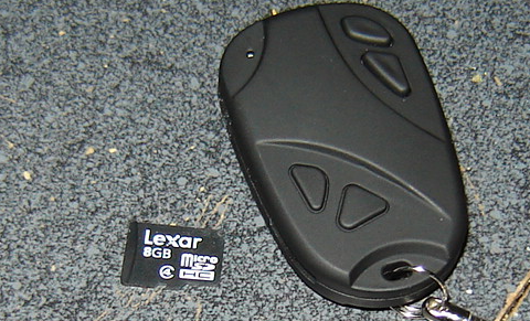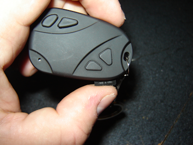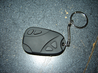 The MicroCamera is an interesting little camera for about ~$20 to $30 dollars. It looks like an automatic carlock and can fit on your keychain. The entire assembly is very light and contains two functional buttons and two fake buttons. The top of the camera has a small LED that tells you the current operation mode of the camera and on the front side oppsite the key ring attachment is the camera and microphone.